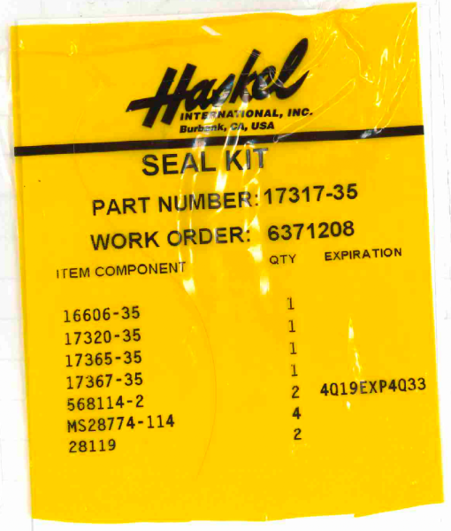 The Haskel 17317‑35 Seal Kit is designed for fluid-section service of Haskel AW, ASW, DW, and DSW liquid pumps. It includes all essential O-rings, U-cups, and backup rings needed to restore full sealing performance. Built to OEM tolerances, it prevents leaks and maintains consistent pressure profiles. Perfect for regular maintenance or pump overhauls, this compact kit supports reliable, high-pressure pump operation in industrial settings. Comes organized in a resealable pouch for quick and clean installation.