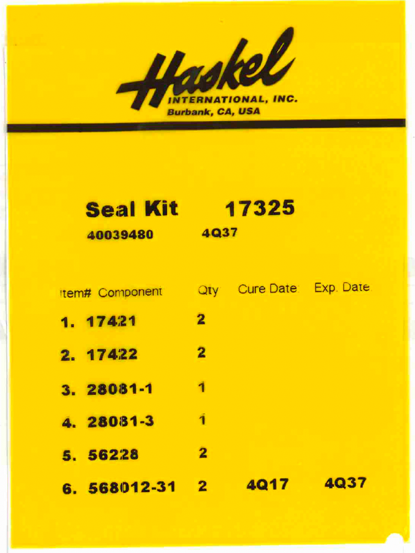 The Haskel 17325 Seal Kit is designed for the gas end check valves in Haskel AG-series gas boosters and pumps. It includes all essential O-rings, backup rings, and seals to restore proper check-valve function and prevent leaks under high pressure. Manufactured to Haskel OEM tolerances, this kit ensures reliable gas transfer and efficient compression performance. Ideal for routine maintenance or emergency repairs, the kit comes neatly packaged for convenient field use. Enhances pump reliability and prolongs service life.