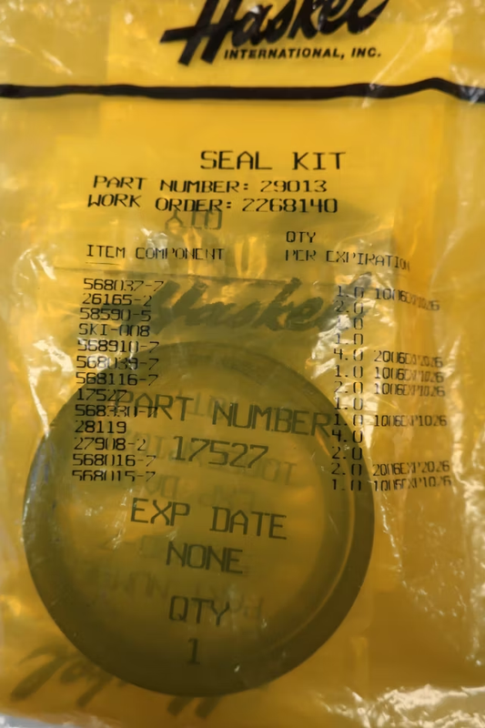 The Haskel 29013 is a comprehensive seal kit designed to refurbish the PS (Packed Seal) section of Haskel pneumatic pumps with 4 or 5 size shafts. It includes all essential seals O-rings, backup rings, wipers OEM-spec quality to restore pressure integrity. Ideal for routine rebuilds or downtime repairs, it ensures leak-free performance under high-cycle conditions. User-friendly with comprehensive instructions, this kit suits models 26968, 28440, 28441, and 59025. Its compact, fully-bagged components are perfect for maintenance in field or workshop settings.