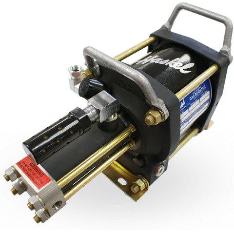 The Haskel gas booster is a durable, two-stage pneumatic pump specifically engineered for hydrogen and inert gas compression. It boosts inlet pressures as low as 15?psi up to a maximum of 9,000?psi (620?bar), utilizing air power to avoid heat and contamination. Its compact, air-actuated design delivers reliable performance for cylinder filling, gas sampling, and high-pressure lab tasks without requiring electricity. Designed for rugged use, it includes interchangeable gas ports and a convenient handle for flexible field or workshop installation.
